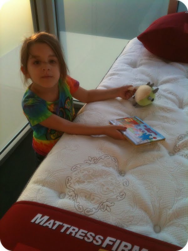 The store even had a little kids table with some books and stuffed bugs on them. She carried those suckers around the entire store the entire time we were there. She asked me to lay on one of the beds with her and read the book to her while she cuddled with me and the bug. I did. What better way is there to test out how comfortable a bed will be in your home than that? I don't think there is any.