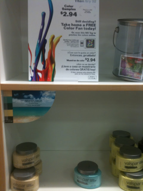 Paint samples in all sorts of fun springy colors. I have never seen these at Lowes before. Not too shabby for $2.94 each. I took one of the free color fans to the right of the sign.